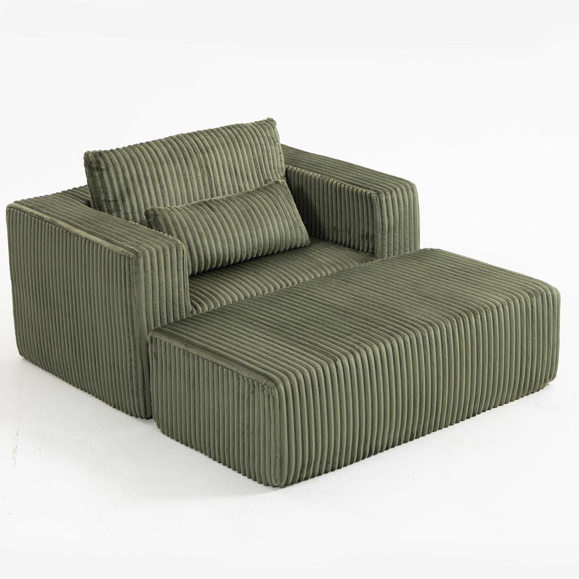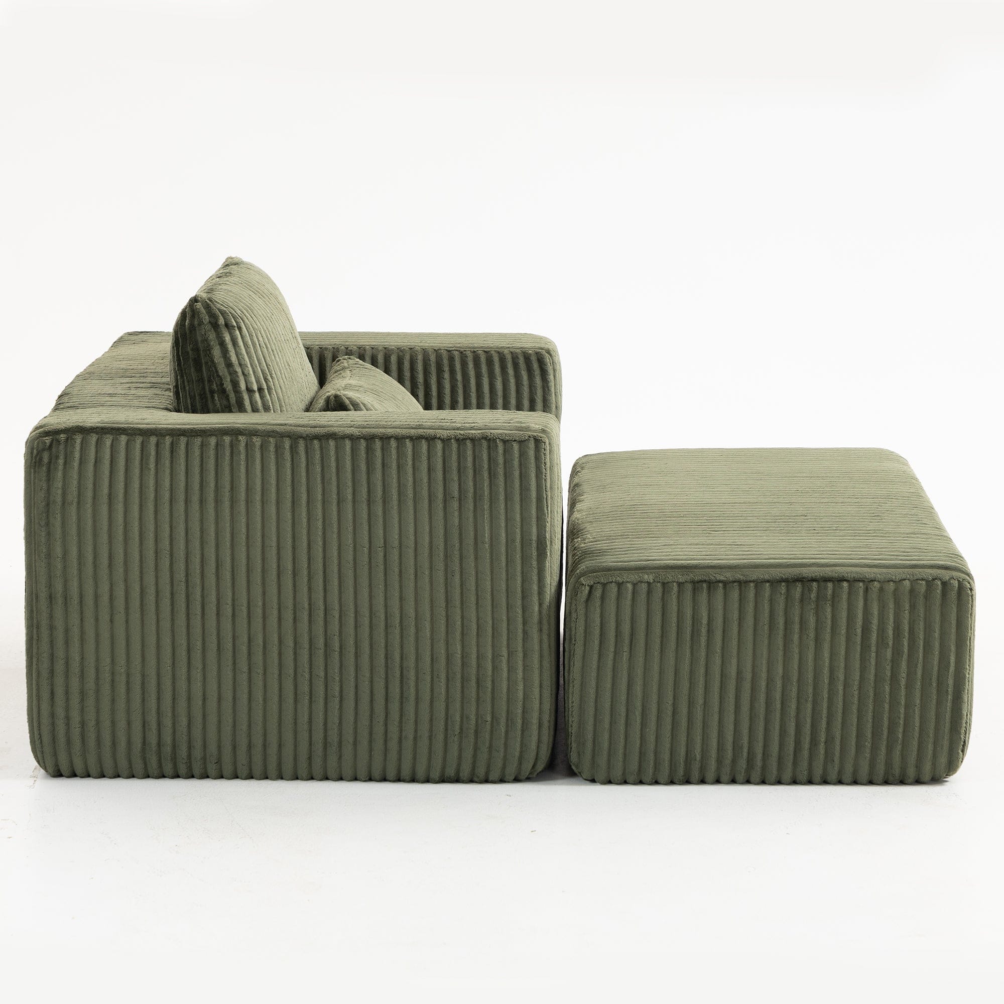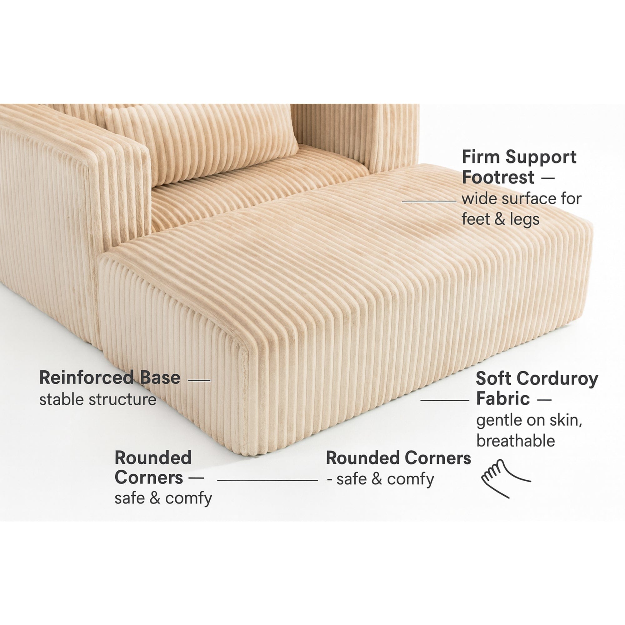 Sink into the Haven Plush Modular Lounge Chair & Ottoman, created for anyone who craves roomy, full-body comfort at the end of a long day. Its oversized deep seat lets you stretch, curl, or settle in without feeling restricted, making it ideal for movie nights, slow mornings, or quiet moments with your favorite book. The all-foam construction supports you gently while maintaining its shape, solving the familiar issue of cushions that sag or flatten over time. Wrapped in luxuriously soft, ribbed corduroy, this piece adds warmth and texture to any room, inviting you to relax with ease. Use the ottoman to create an instant chaise in either direction or place it separately as an extra seat when hosting.