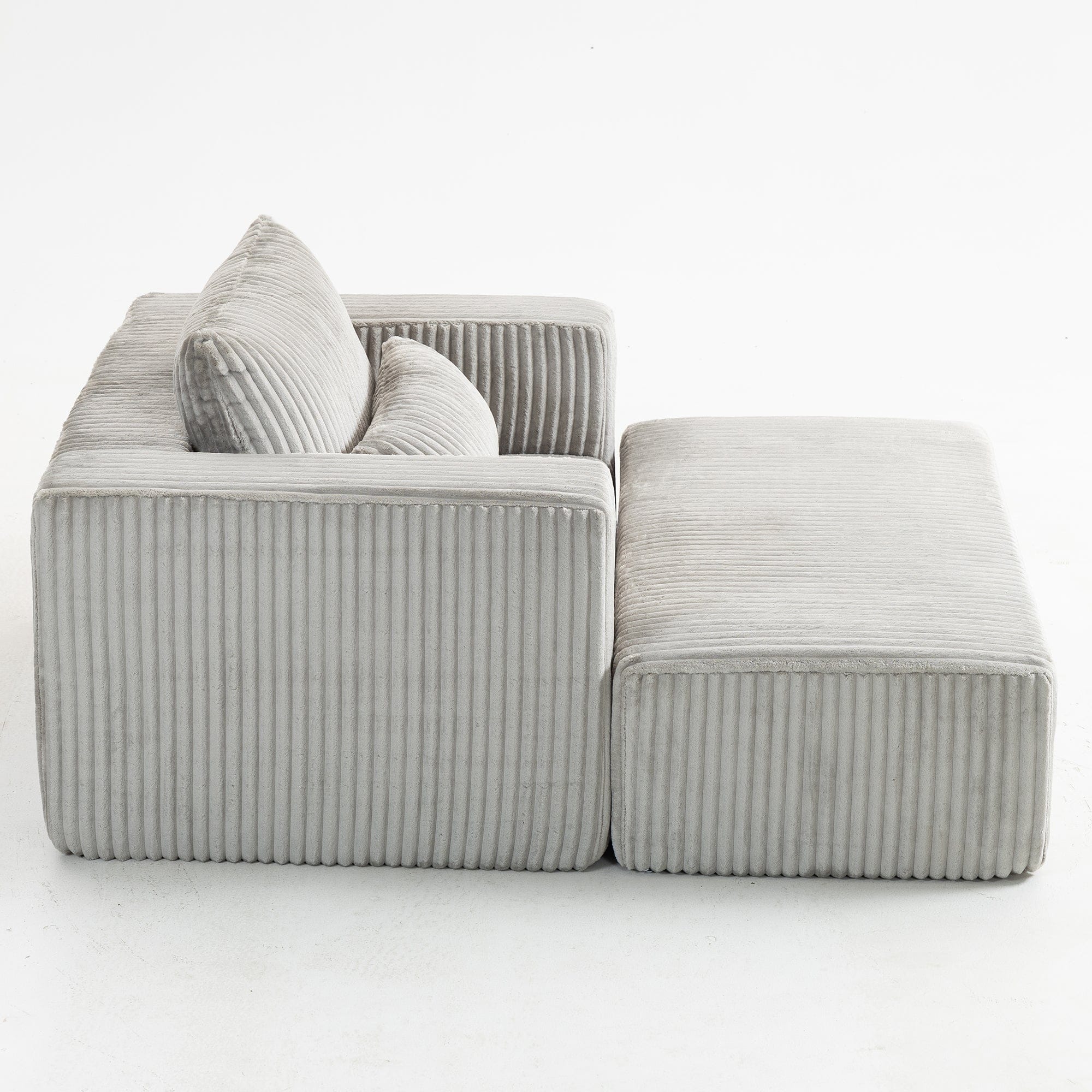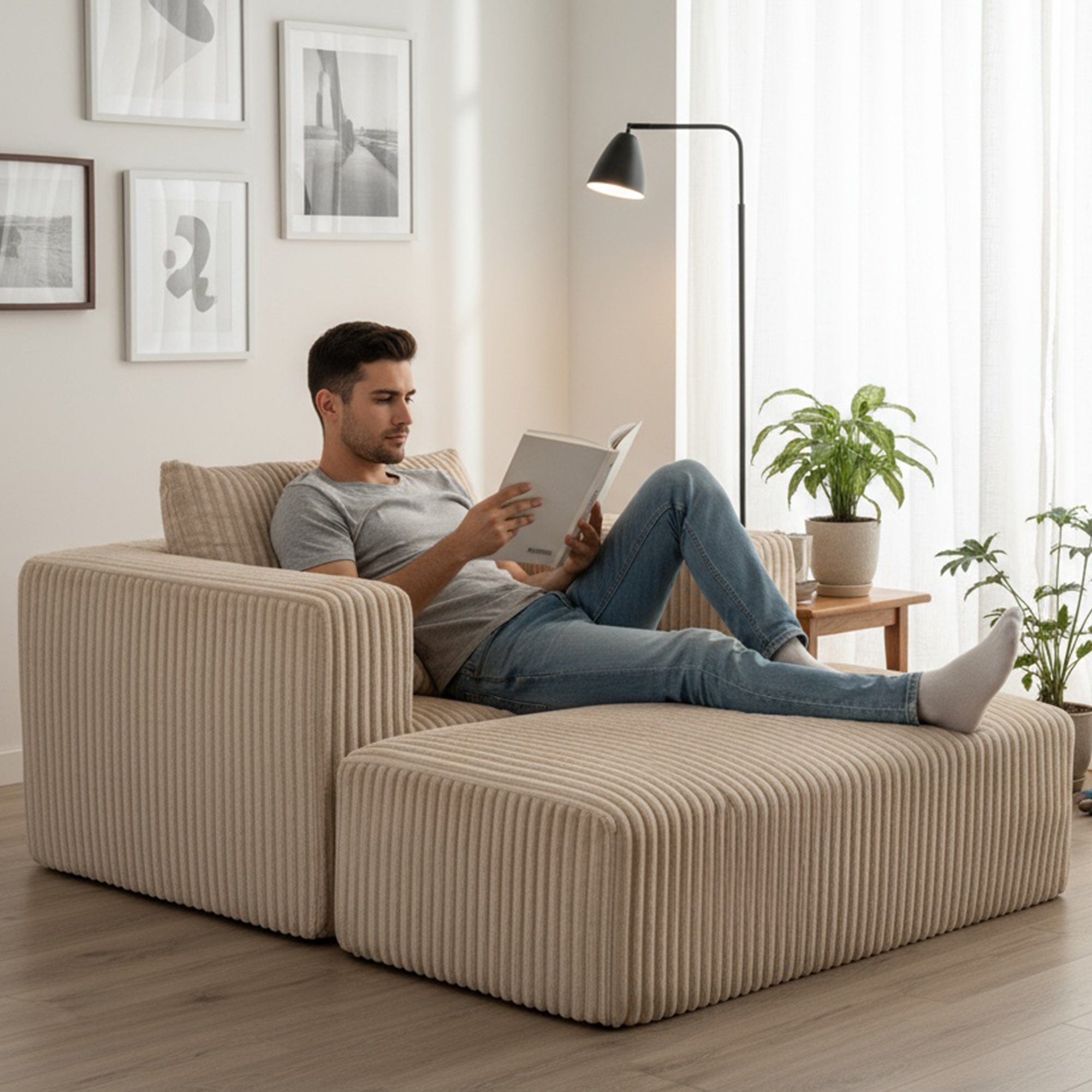 Haven Plush Modular Lounge Chair & Ottoman – Ribbed Corduroy in Sandstone