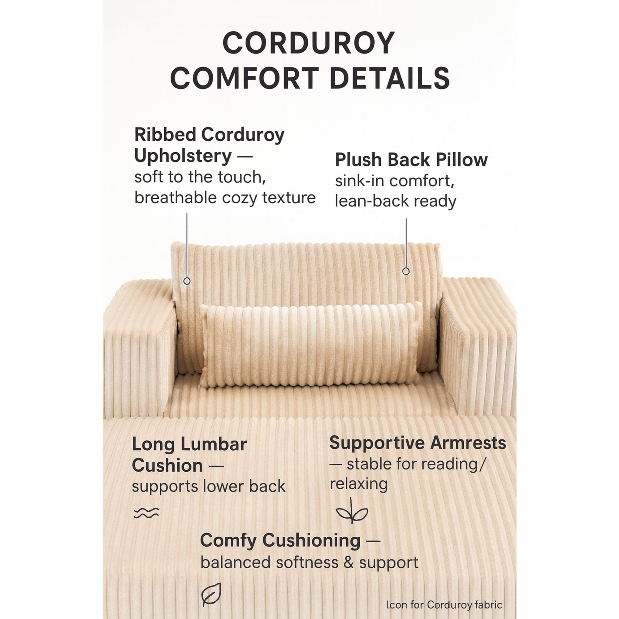 • Material: High-resilience all-foam interior; ribbed corduroy upholstery